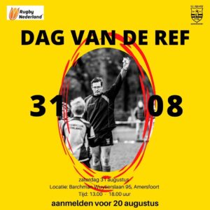 Zaterdag 31 augustus zal er bij Rugby Club Eemland een Dag van de Scheidsrechter georganiseerd worden. We ontvangen graag alle scheidsrechters om met en van elkaar te leren zodat we klaar zijn voor de nieuwe competitie en natuurlijk ook om elkaar weer te ontmoeten. Ter afsluiting van de workshops en voorlichting zullen we met elkaar wat drinken en wordt er door RC Eemland een maaltijd gemaakt die aangeboden wordt door Rugby Nederland.